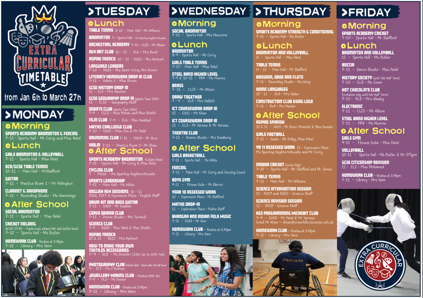 See our Extra Curricular Timetable below: